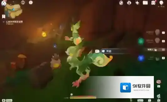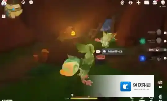 3、右转后可以看到一只匿叶龙,在匿叶龙的身后有一个华丽宝箱,但对方不肯让路;