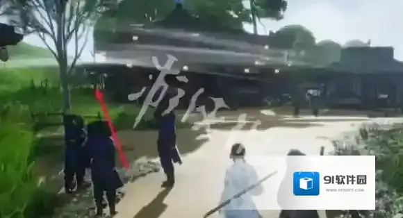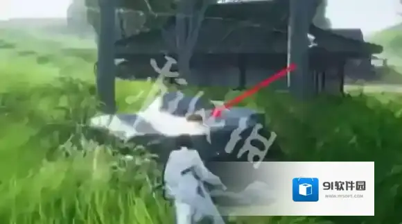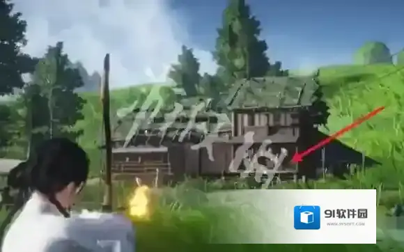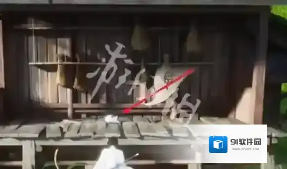 7、到达后,去箭头处房子的屋檐下,即可看到猫戏。