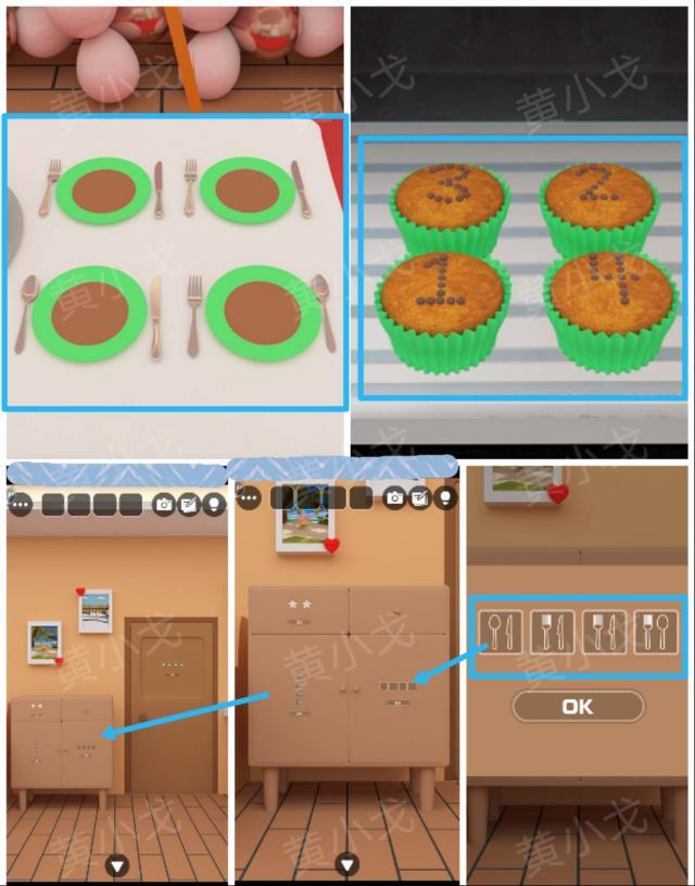 [厨房]场景蛋糕的位置及上面的数字:左上-3,右上-2,左下-1,右下-4