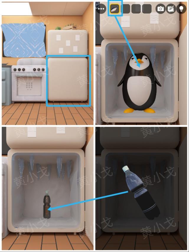 10.打开冰箱冷冻层,拿鱼喂企鹅;企鹅走开,获得可乐