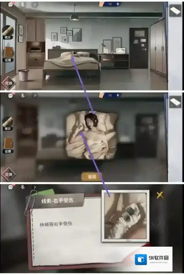 6.点击林萌萌的右手,收集右手受伤