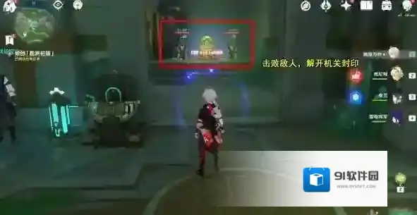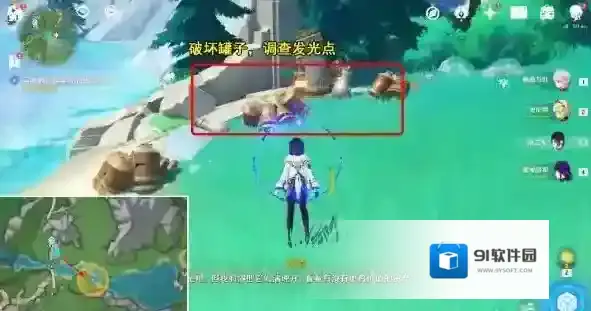 5、来到任务点将罐子打破并调查发光点,将出现的机关和敌人击败。