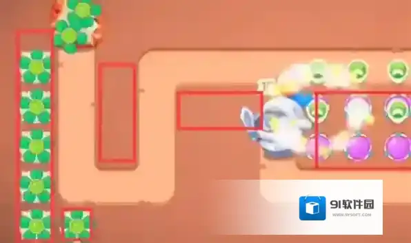 2、开局放置风扇清怪的同时开图,有钱之后在后方放置魔法球开图补漏。