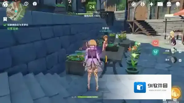 2、与卖花的小女孩芙萝拉对话,会请求旅行者帮忙摘些花。