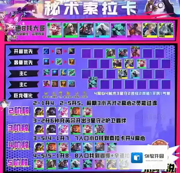 阵容羁绊:3幻灵3星之守护3秘术3决斗2特工2斗士2淘气包