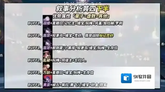 BUFF1,大黑塔+那刻夏/小黑塔+缇宝/记忆主/知更鸟+灵砂/风堇/加拉赫。