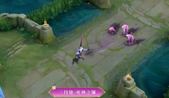 拿起自己的涂鸦镰刀然后赚一圈同时进行蓄力期间武器的尖端还有冒烟的特效,挥动武器的时候白起的周围也会冒着黑烟,白起的走路姿势还是弯腰。