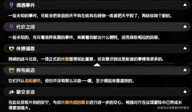 PS:零号业绩的获取上限依旧是悬赏委托的1000+关卡挑战的900,其中该战斗肉鸽可通过战斗内的偶遇事件触发零号业绩的获取,一次225,或者通关一次战线肃清(具体地图关卡详情下一部分讲)