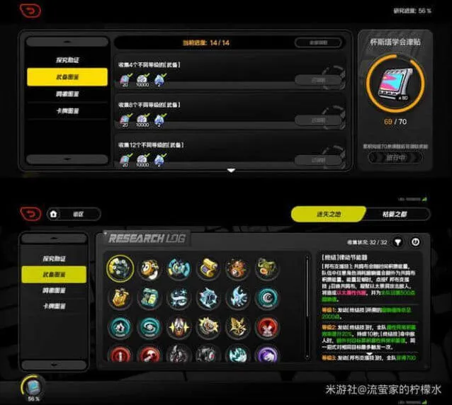 武备收集仅算邦布武备,每个有4级增益,共32个+24个角色专属武备24个共56个收集。