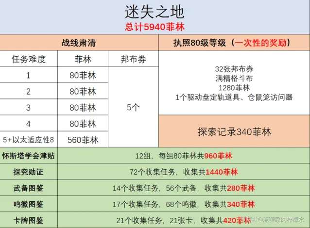 3、迷失之地总共可获取5940菲林