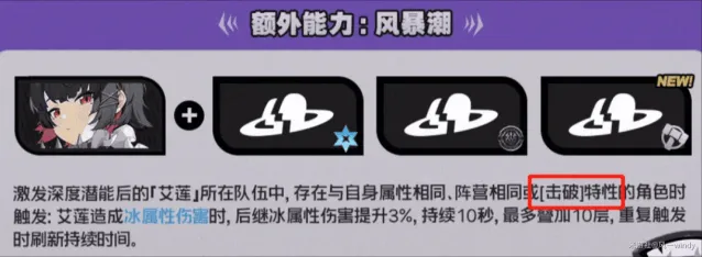 本次对艾莲的强化幅度非常大,数值方面,原本的100%暴伤加成几乎成为全覆盖,并且新增的自动招式[霜锋]为艾莲带来了新的倍率。