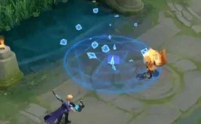3.二技能是法阵显现,钻石型能量块坠地后消散,散布边缘的碎片呈陨落状。