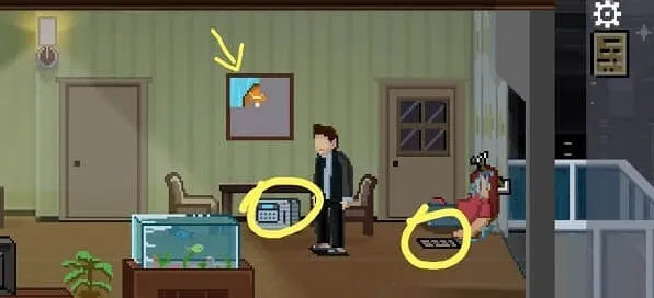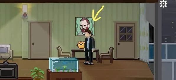 客厅墙上的画后面,输入窗户上显示的“coke”获得可乐,输入墙上散落的“chip”获得薯片,这里注意没拼电脑桌上拼图就输入coke,获得的可乐会导致游戏失败。根据冰箱上的纸条,把可乐薯片摆在电脑桌上,获得光盘,插入电脑,选择右边,movie。如果选TapTap游戏会失败,得到一个成就。
