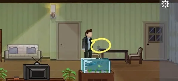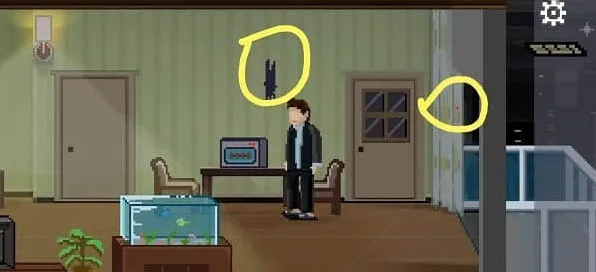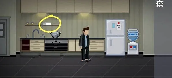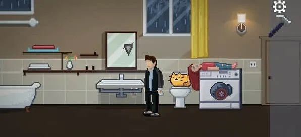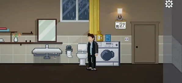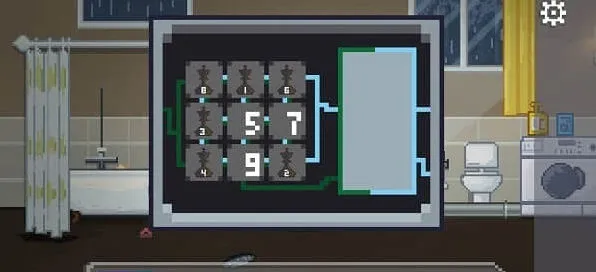 把玻璃安在浴室镜子上,拾取洗衣机里的轮胎,点击镜子穿越。
