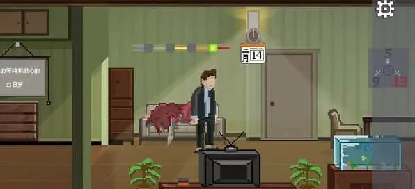 客厅墙上的画代表问号与三个日期分别相隔5.9.13天,为2月1日,进入书房时光机,输入0201,在客厅桌子上拾取种子。输入书房里找到的最早日期0123,把种子种在客厅右边的花盆里,进入厨房拾取小刀,肥料,水壶;在书房时光机里输入浴室里的第二个日期0127,给花盆浇水;时光机输入0201,给花施肥;时光机输入0214,用小刀把花割下来,送给沙发上的妻子。