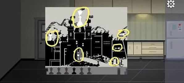进入书房,给吉他装上弦,吉他上有2个圆形;拼好乐谱,乐谱上有三个正方形。给客厅里的留声机输入“233”,飘出三个音符,结合乐谱,在吉他上演奏245414543465,我第一次玩的时候解不出谜题,一个个硬弹的你敢信?