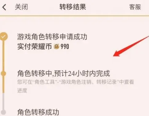 9、费用支付成功,安心等待角色转移结果即可。