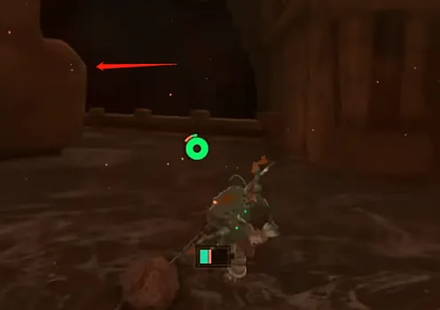 2、到达终点会看到一块红色岩石,用阿沅撞破它,就会出现新的机关。然后从机关旁边的轨道放矿车,往身后开。