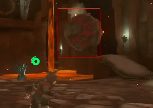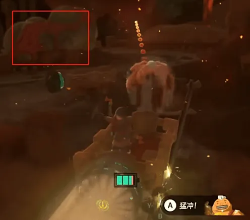 3、往里探索,在火焰莱克位置的对面有一块红色岩石,先用水制造空地,然后用阿沅的技能撞碎它。