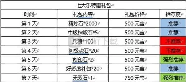 3:弹出礼包中的装备礼包性价比特比特别高,元宝/招募券礼包性价比较低,想买礼包的建议买弹出的装备礼包。