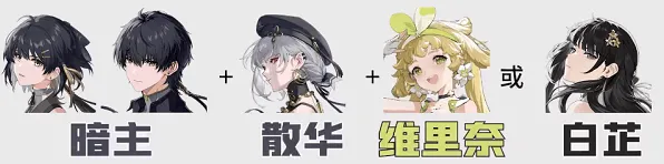 暗主的毕业配队是暗主作为主c,搭配可以提供湮灭伤害加成的丹瑾作为副c,再加上维里奈或者白芷作为奶妈。