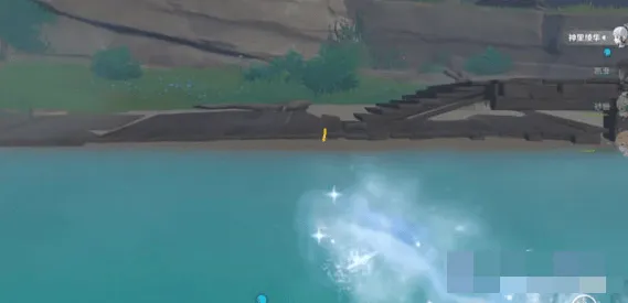 2、从地图找到雷暴区域的方向,从出发点开始,不断的向雷暴地区靠近,可以通过游泳的方式。(开始选用神里,因为这样的速度会快一些)