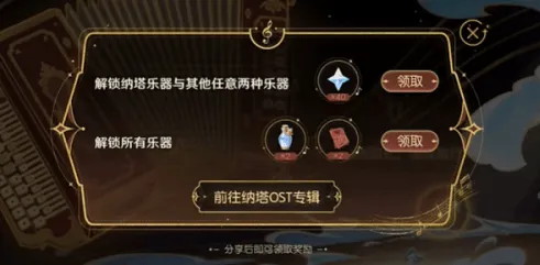 4、待所有乐器环节点击完毕,即可宣告任务达成,并获取全部预设奖励。