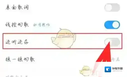 4、最后在设置中找到边听边缓存功能并将其关闭即可完成操作。