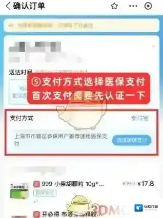 4、选择需要的药品后,在支付页面上选择医保支付,首次使用会提示你做个认证