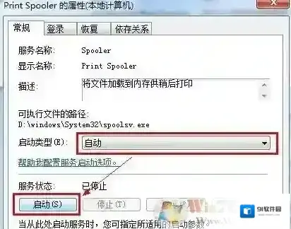 3、将”启动类型“设置为”自动“,然后点击”启动“按钮启动该服务;