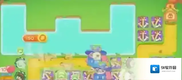 4、河对岸的道具不好打,只能利用船锚将血条浅的障碍物打掉,空出的位置放置多重箭;