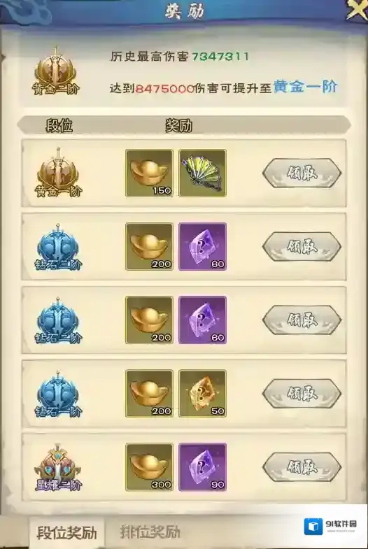2.同段位奖励仅发放1次,可在奖励界面领取。
