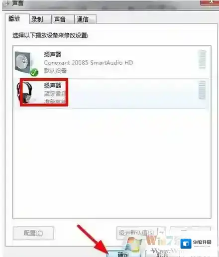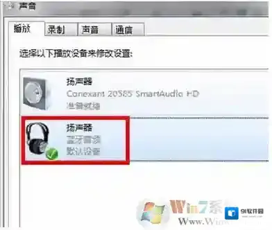 7、此时的默认播放设备是内置的扬声器,必须把蓝牙音频作为默认播放设备,才能使用蓝牙耳机听音乐 ,设置完成后,就可用蓝牙耳机听电脑播放的音乐了。