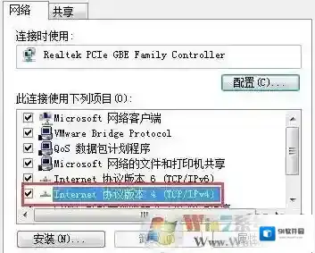 2、右键点击本地连接选择属性,在弹出的对话框里点击Internet协议,如图: