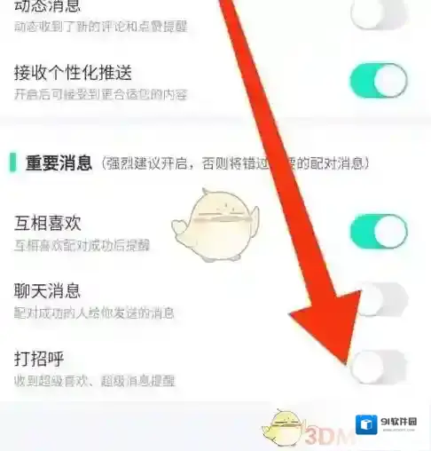 4、在消息通知里,将打招呼功能开启即可。