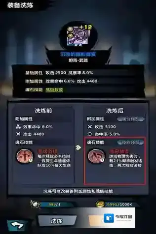 3、如果对获取的装备技能不满意,可以使用洗练功能对装备技能进行重置,重置范围固定在装备原来给出6个初始技能之间随机选择,洗练需要消耗洗练石与金币