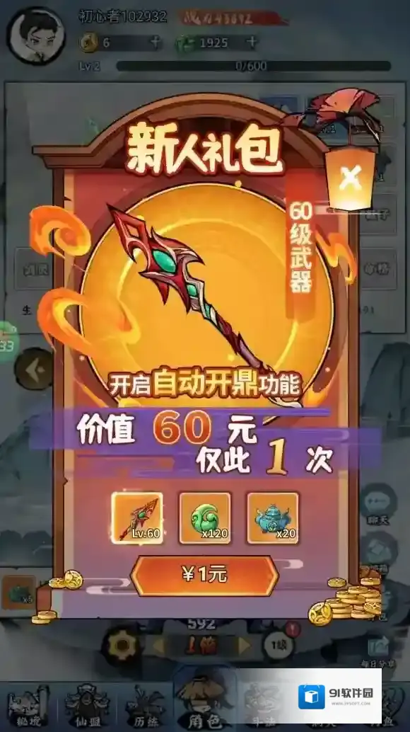 6、有条件的宝子建议购买这个新人礼包,只需1元,对你前期的战力提升很大。