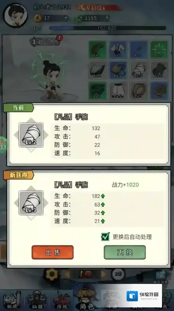 2、打造出来的装备好的直接换上,不好的直接出售。