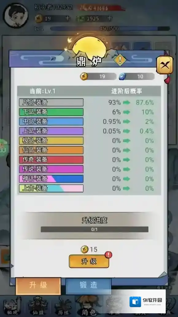4、点击炉子下方等级,可以将鼎炉升级,提高稀有装备爆率。
