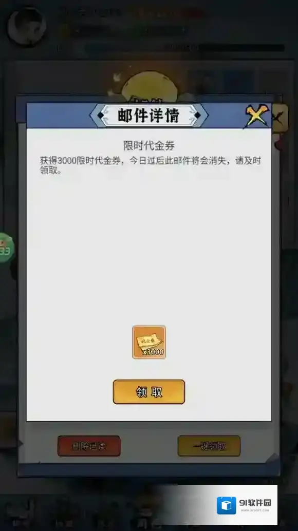 3、去邮件当中领取每天送的代金券。