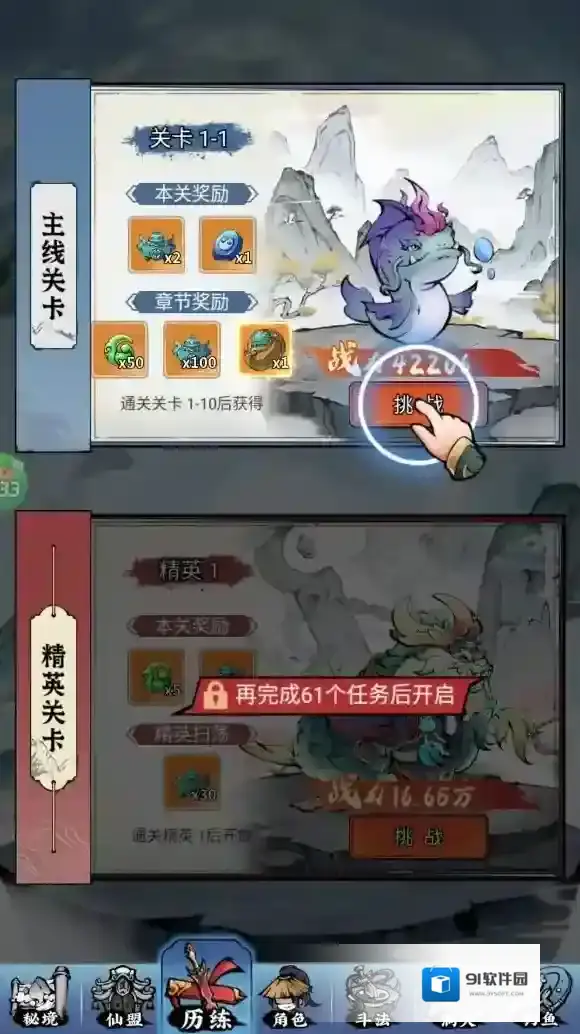 7、完成一定任务后,点击下方历练就可以开始历练了。
