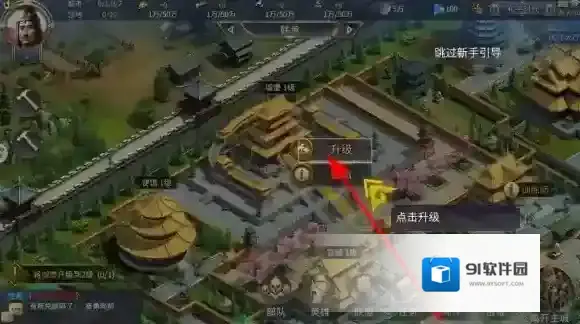 2、进入游戏后,对城堡进行升级,点击城堡上的升级按钮,提升城堡等级,以此解锁更多功能与资源,增强自身实力。