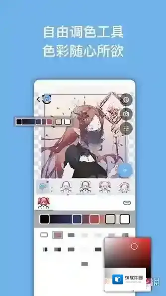 2、在页面左侧可以找到一个调色板功能,如果调色板显示为灰色,则表示当前作品不支持调色。