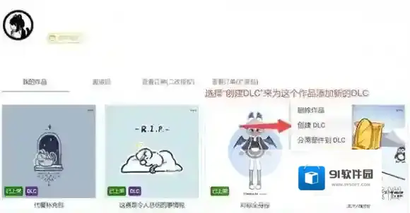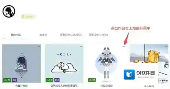 1、在捏咔工坊中,选择想要为其创建DLC的作品,然后点击作品右上角展开的菜单。