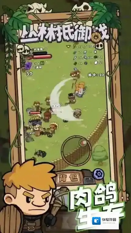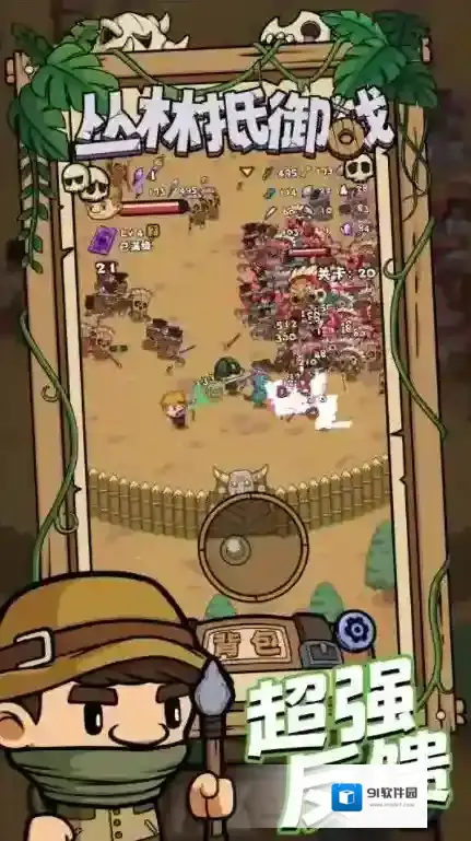 丛林抵御战,一款肉鸽割草生存游戏,玩家将带领自己的小队来完成不同的生存挑战,在丛林抵御战里有很多的敌人等你去击败,非常多的材料等你去收集使用,各种伙伴角色将等你去招募培养,不断击败更多的敌人完成挑战,解决更多的敌人成为最厉害的战士。