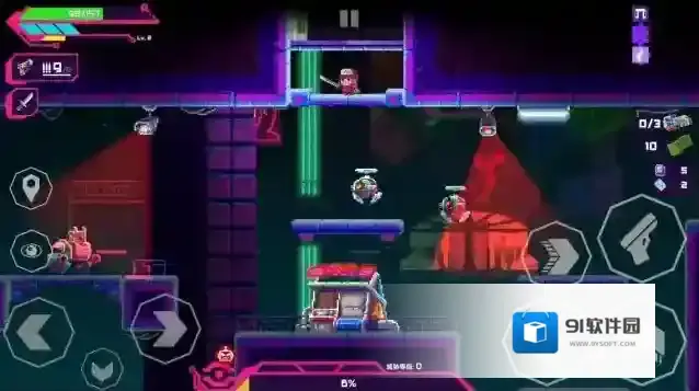 2、正式开始后左边控制角色的移动和互动,右边是攻击、跳跃、冲刺和射击按键。