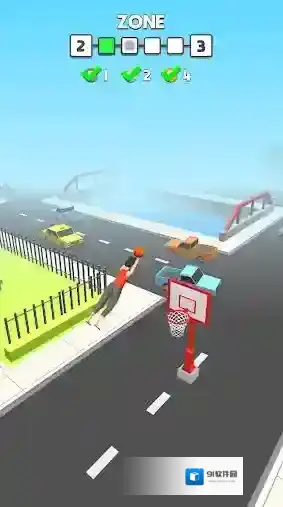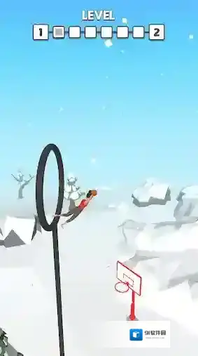 2、游戏的关卡难度逐渐增加,玩家需要通过各种道具在空中进行翻转,将篮球帅气的扣进篮筐。