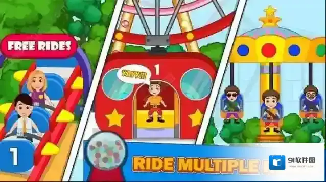 2、开放场景探索:从游乐设施到休闲区域,丰富场景等待解锁,玩家可自由探索不同区域,发现隐藏任务与趣味彩蛋。