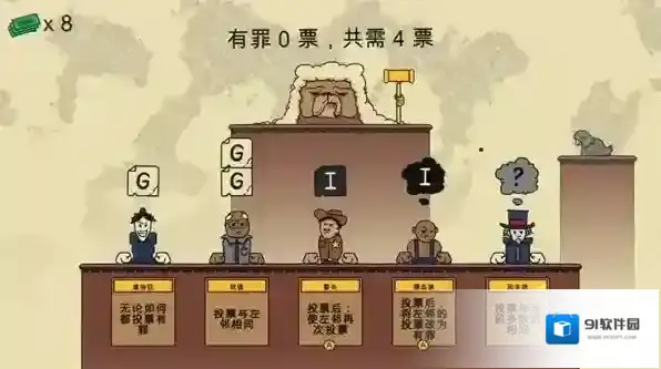 1、开局三块钱启动资金,用钱买证人收集无罪票,第一轮只需一张票就能过关。