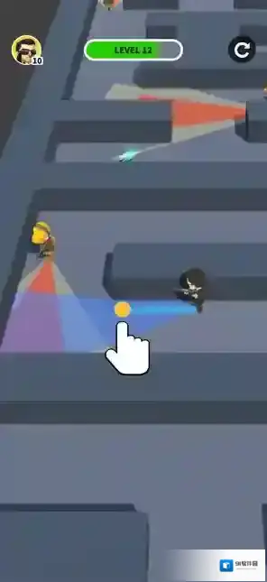 1、指尖拖动移动攻击:通过手指拖动控制角色移动,利用探查半径机制,在进入敌人范围后发起攻击,同时警惕被其他敌人发现。